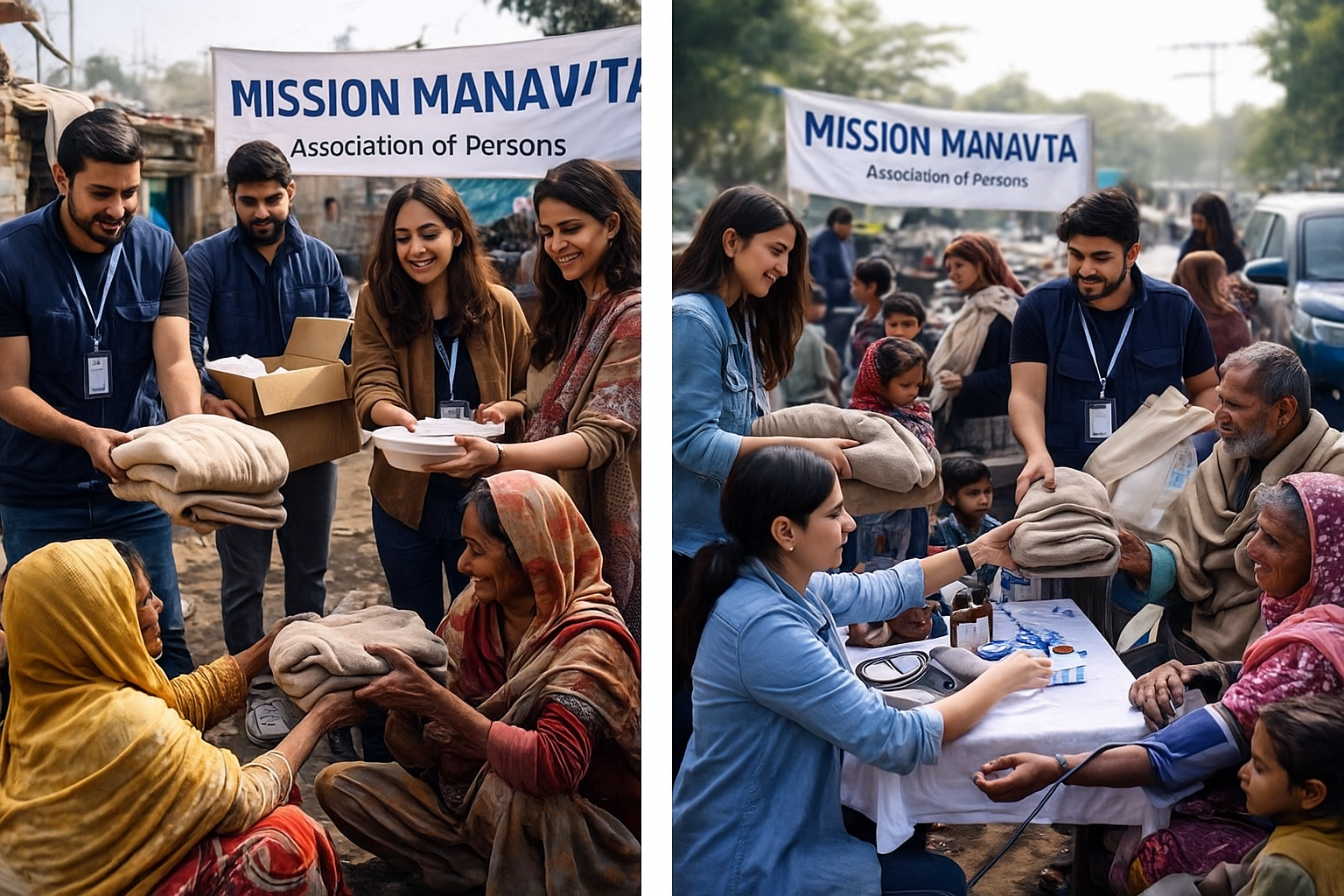 Mission Manavta is a collective formed in Delhi by individuals who share a simple belief: every person deserves dignity, warmth and the assurance that they are not alone. We operate as an Association of Persons (AOP), built by people who wanted to step beyond sympathy and take real action at the ground level. Mission Manavta is not a corporate body and not a large NGO with complex structures. Instead, we are a grassroots initiative driven by ordinary citizens who come together with a common purpose ā to support those who are facing hunger, cold and isolation in their daily lives. Our work is rooted in direct community engagement. We meet people where they are, understand what they are going through and try to offer immediate help in practical ways. Whether it is providing food during difficult seasons, distributing warm clothing in harsh winters or stepping in with essential support for families in distress, we focus on what truly matters: easing someoneās hardship with empathy and consistency.